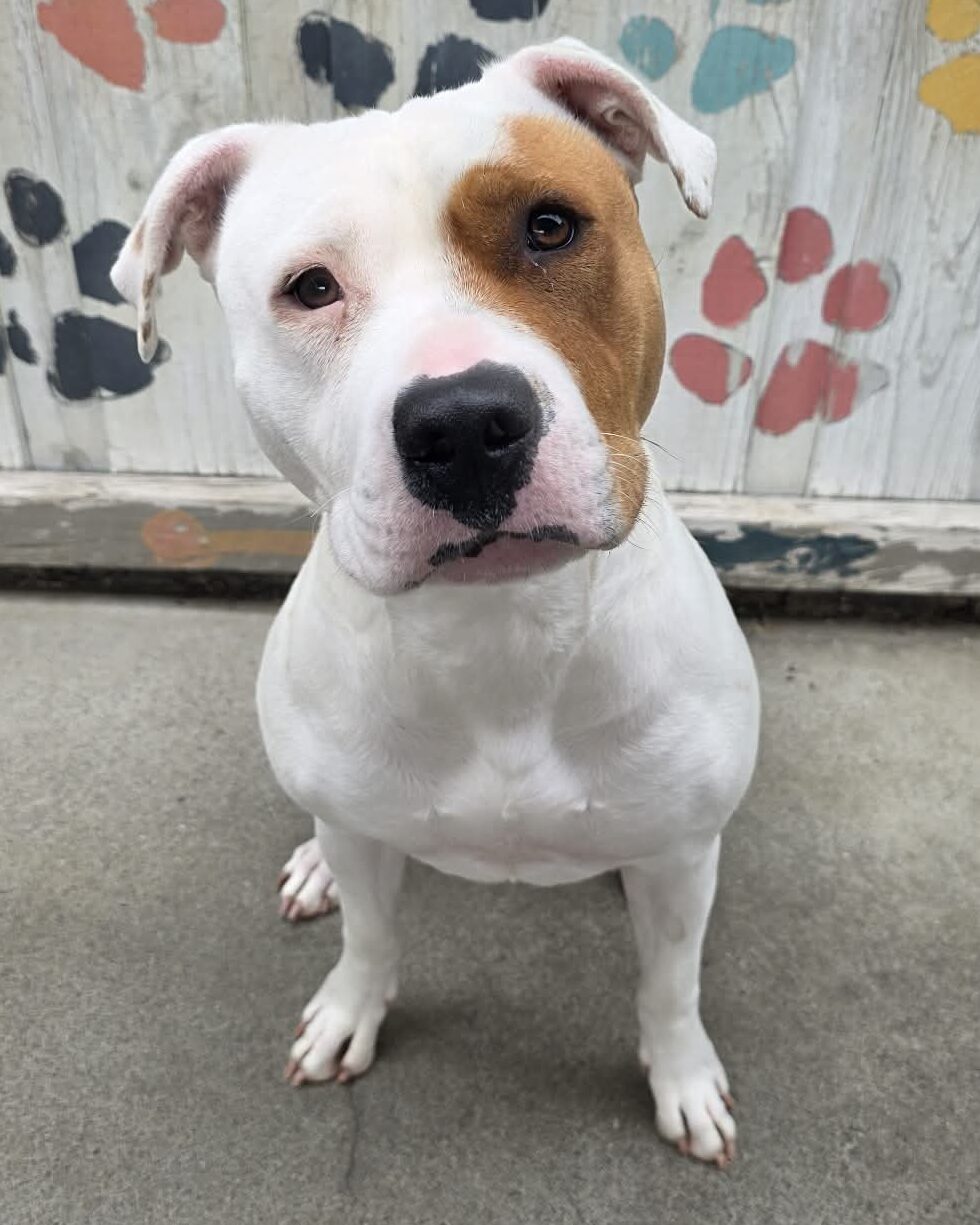 This soon-to-be domestic goddess is a Staffy-Mastiff x. “Athena is very sweet and loves a good belly rub,” staff say. “She is friendly and happy, and enjoys affection, but prefers to have company and gets upset when left alone.” She must go to a home where she he has another dog to stave off her lonely cowgirl blues.