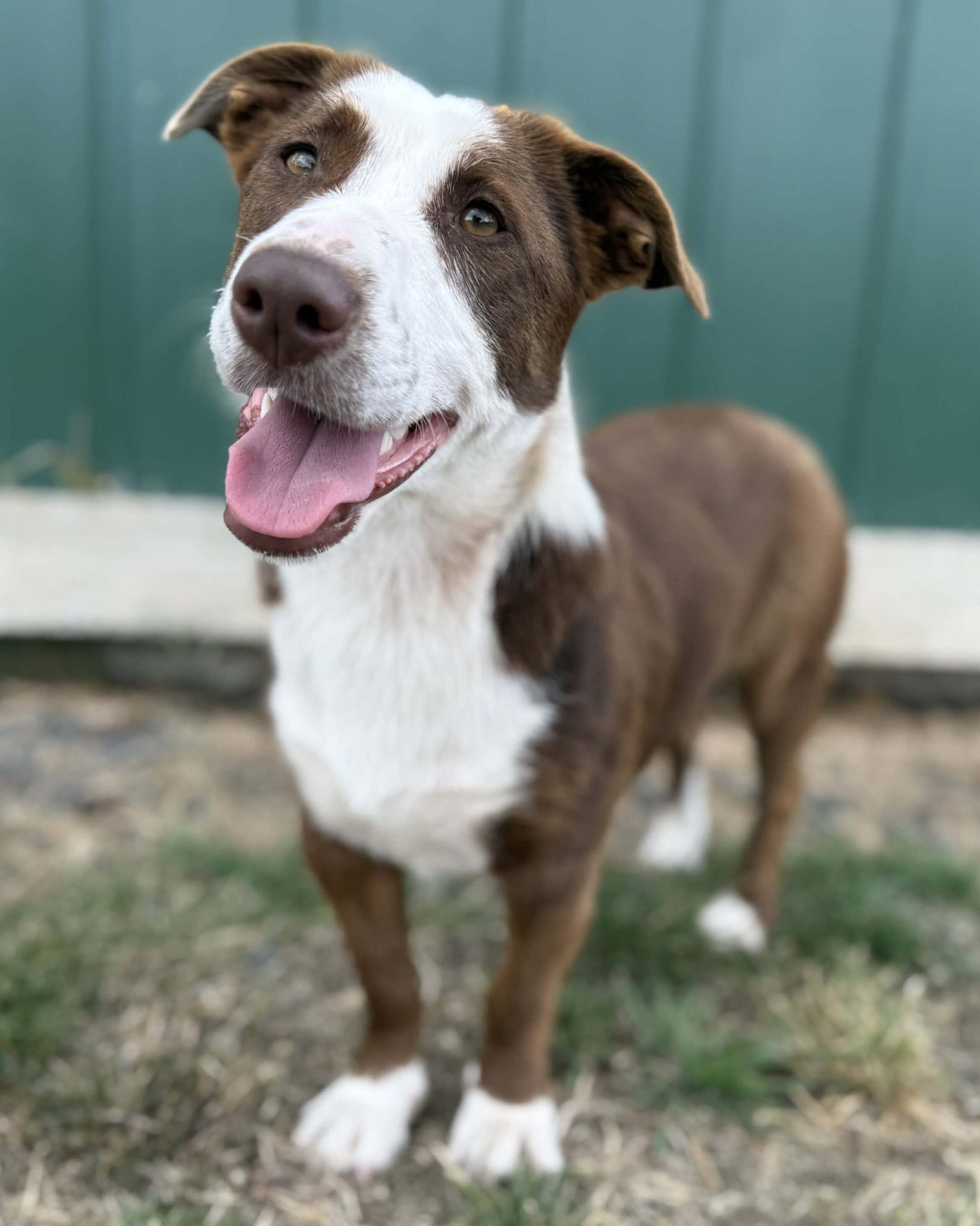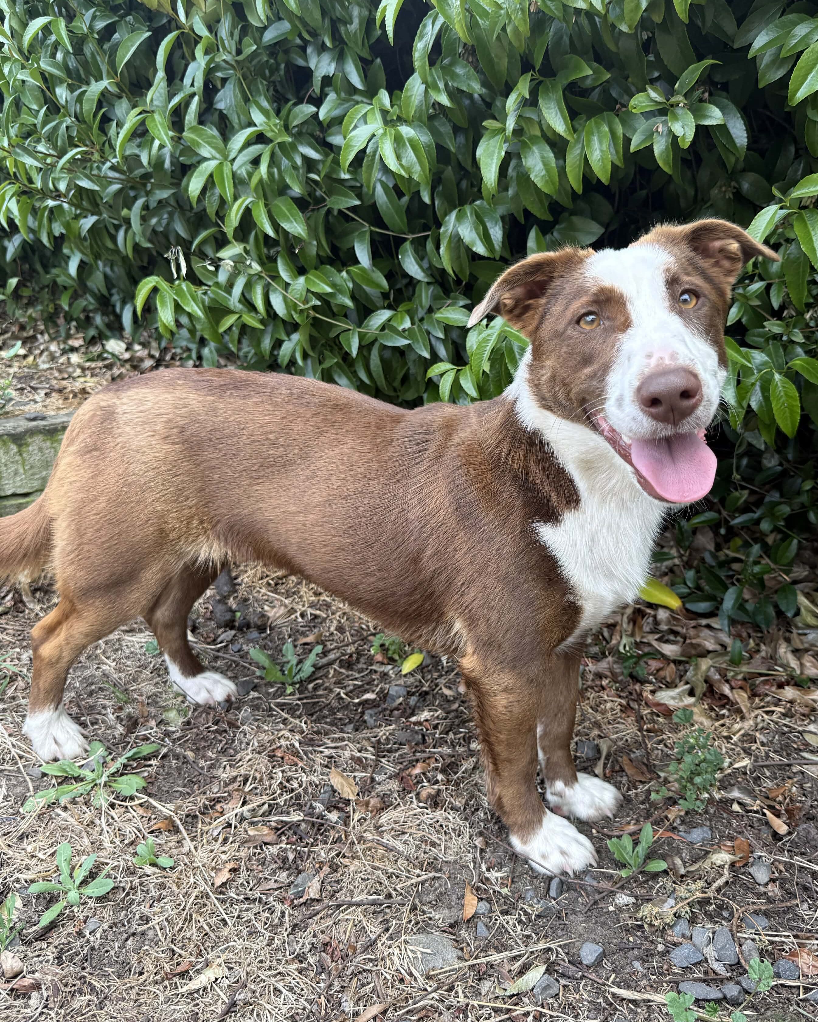 She’s a Border Collie-Jack Russell x who, to be honest, is a lil lacking in the leg department. Oh well, you can’t have it all. And it just adds to her appeal. “She seems curious and likes to explore,” staff say. “She enjoys zoomies and toys, and a play under a garden sprinkler.
