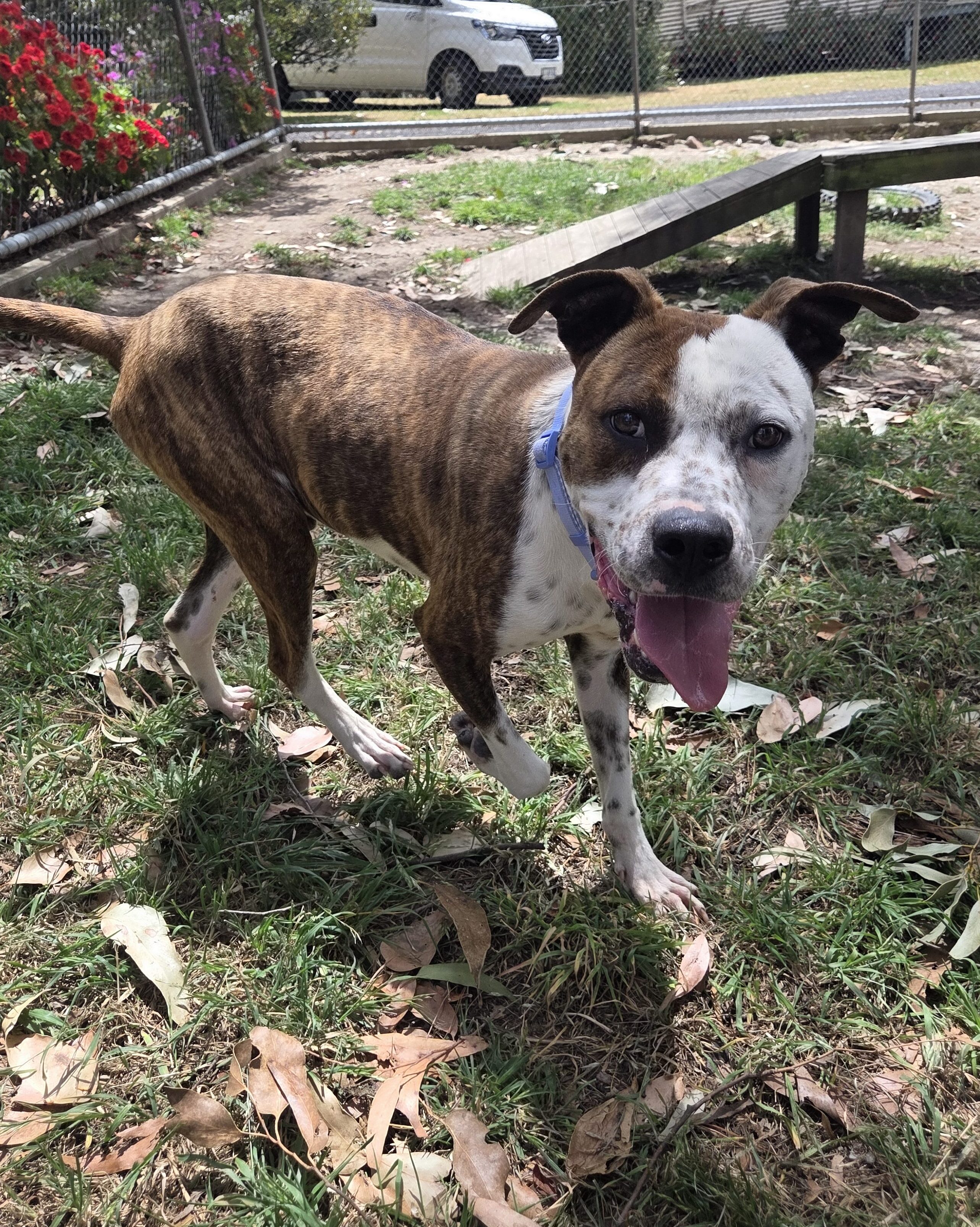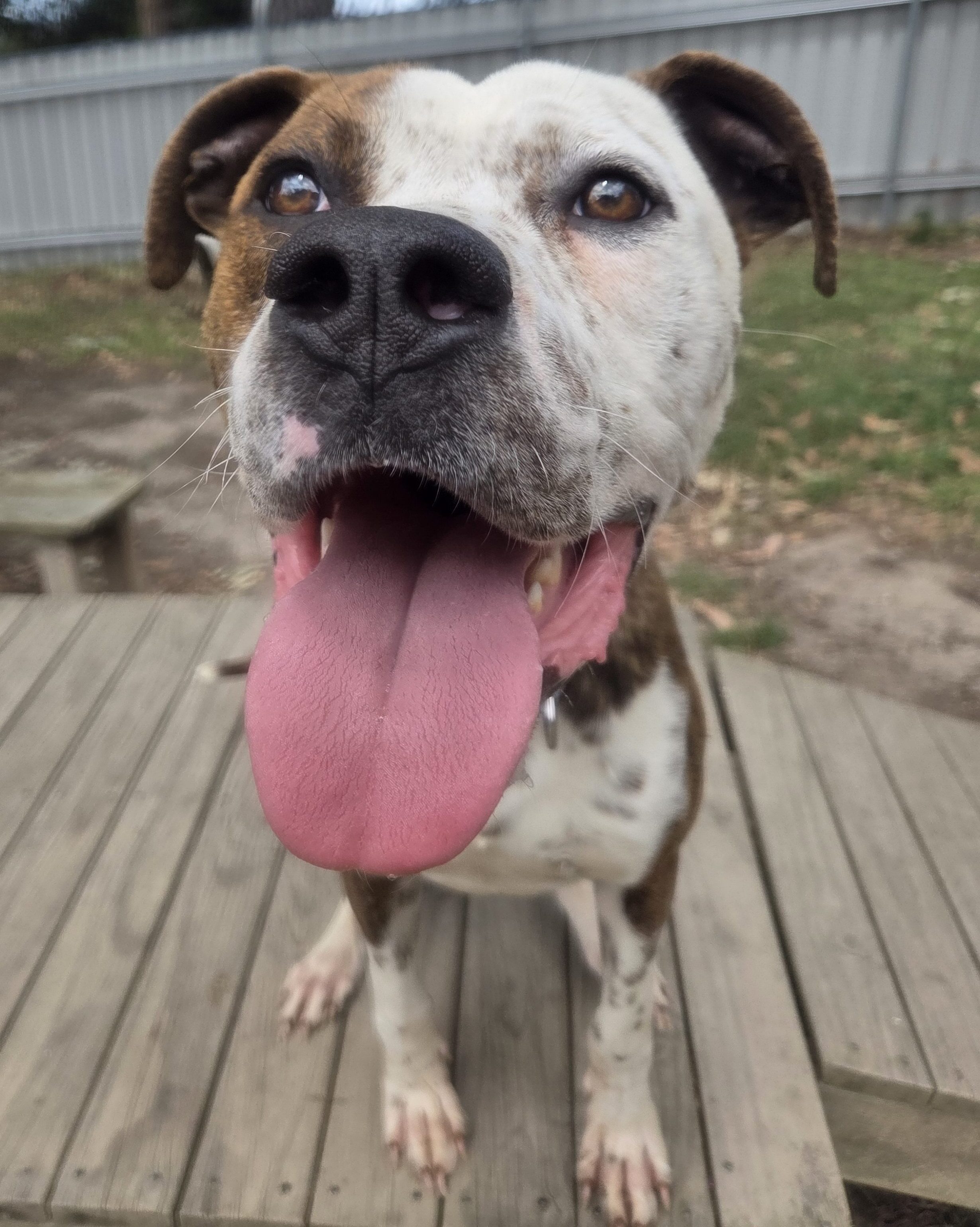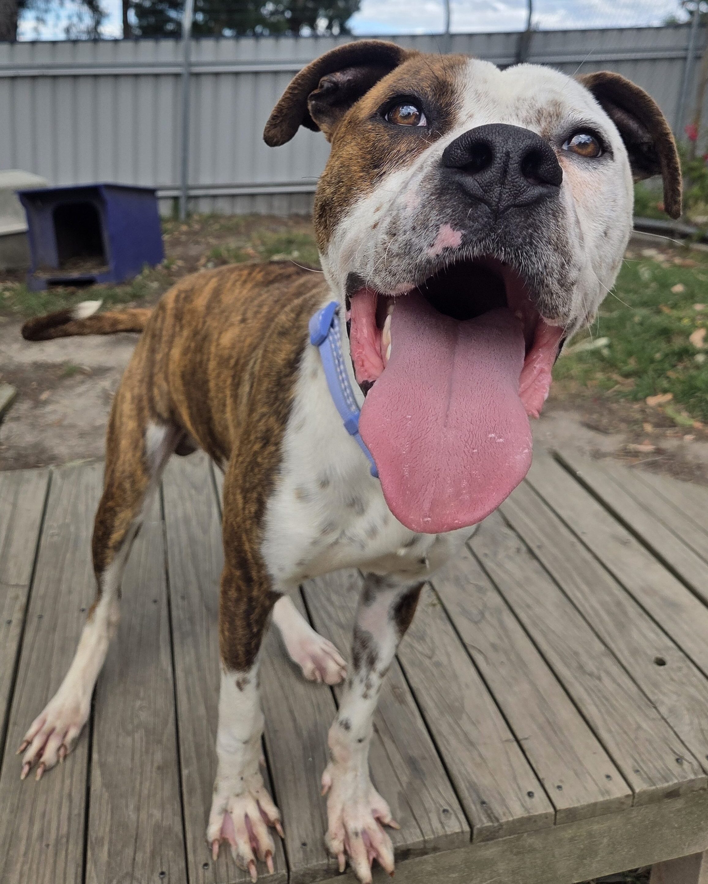 “Bonnie is a happy, friendly excitable boy,” staff say. “He plays with his toys in a goofy way as he’s still learning about them.” Unsurprisingly, Bonnie is food focused which bodes well for the training he needs. We recommend a beginner obedience class for him.