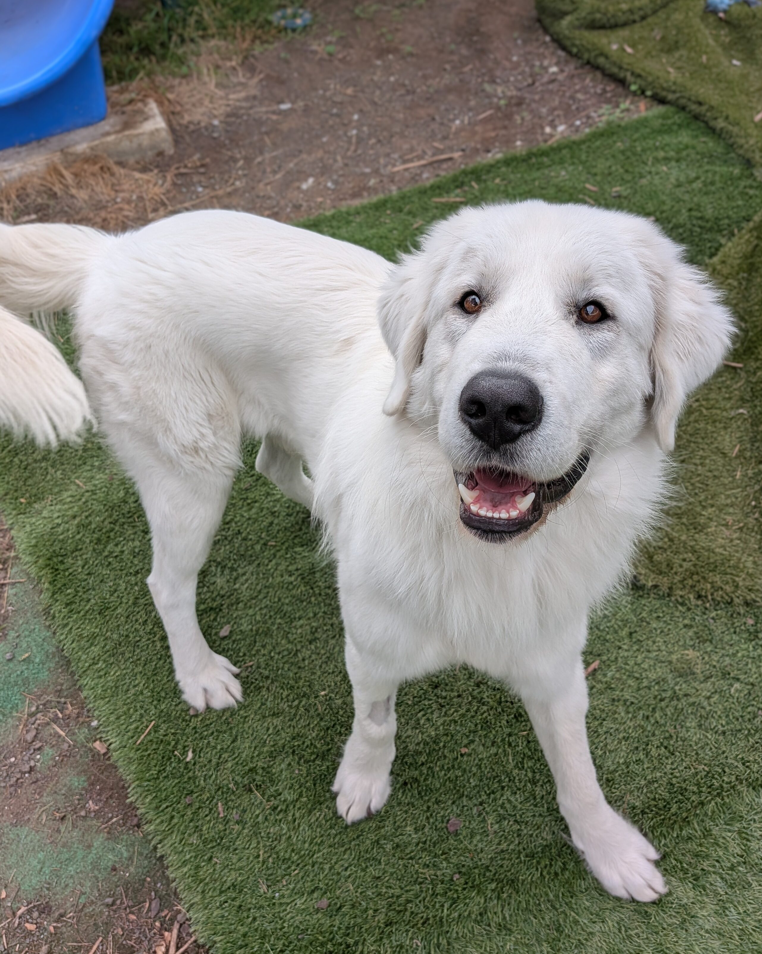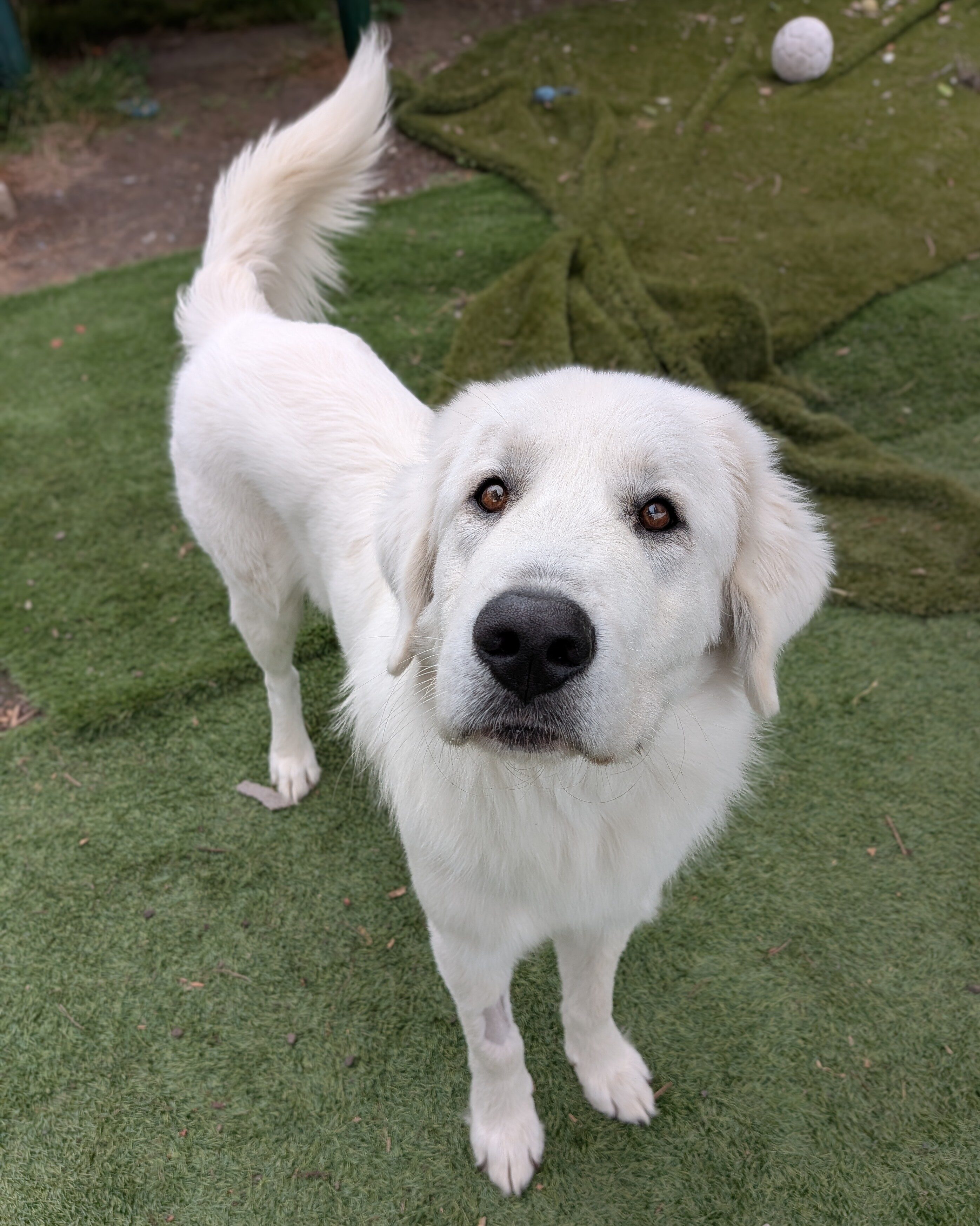 “Bosco is a big smoochy boy who loves a cuddle and scratch behind the ear,” staff say. Clearly this guy hasn’t heard that Maremmas are “supposed” to be a lil standoffish.