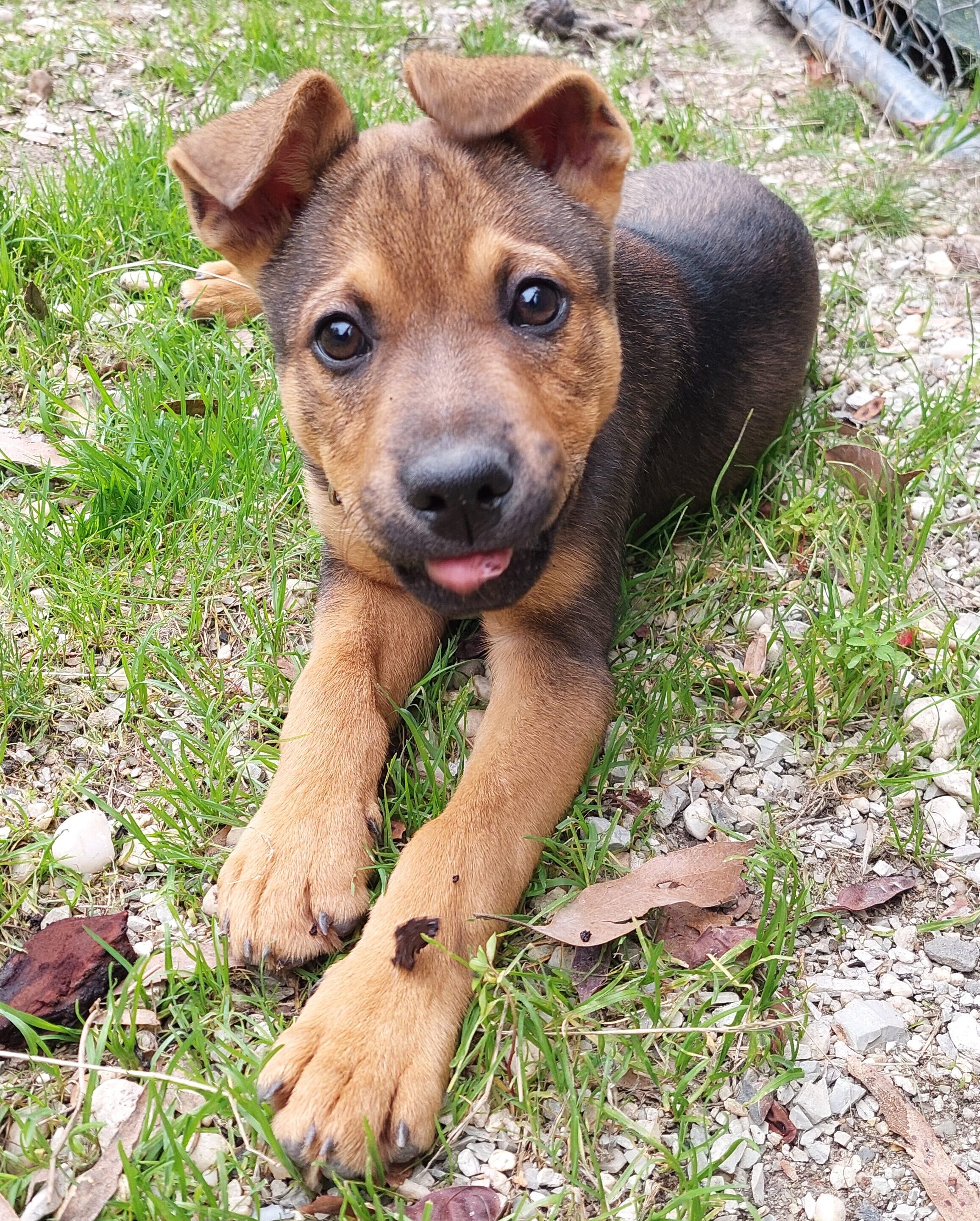 He’s a Staffy-Mastiff x who we reckon will grow up to be a fairly big boy. “Chase is a very friendly and energetic pup,” staff say. “He is certainly full of life and is a lot of fun to be with. He loves to be around people and also has a dog best friend he loves spending time with, playing chasings (of course) and zoomies.” He might like a canine companion in his forever home.