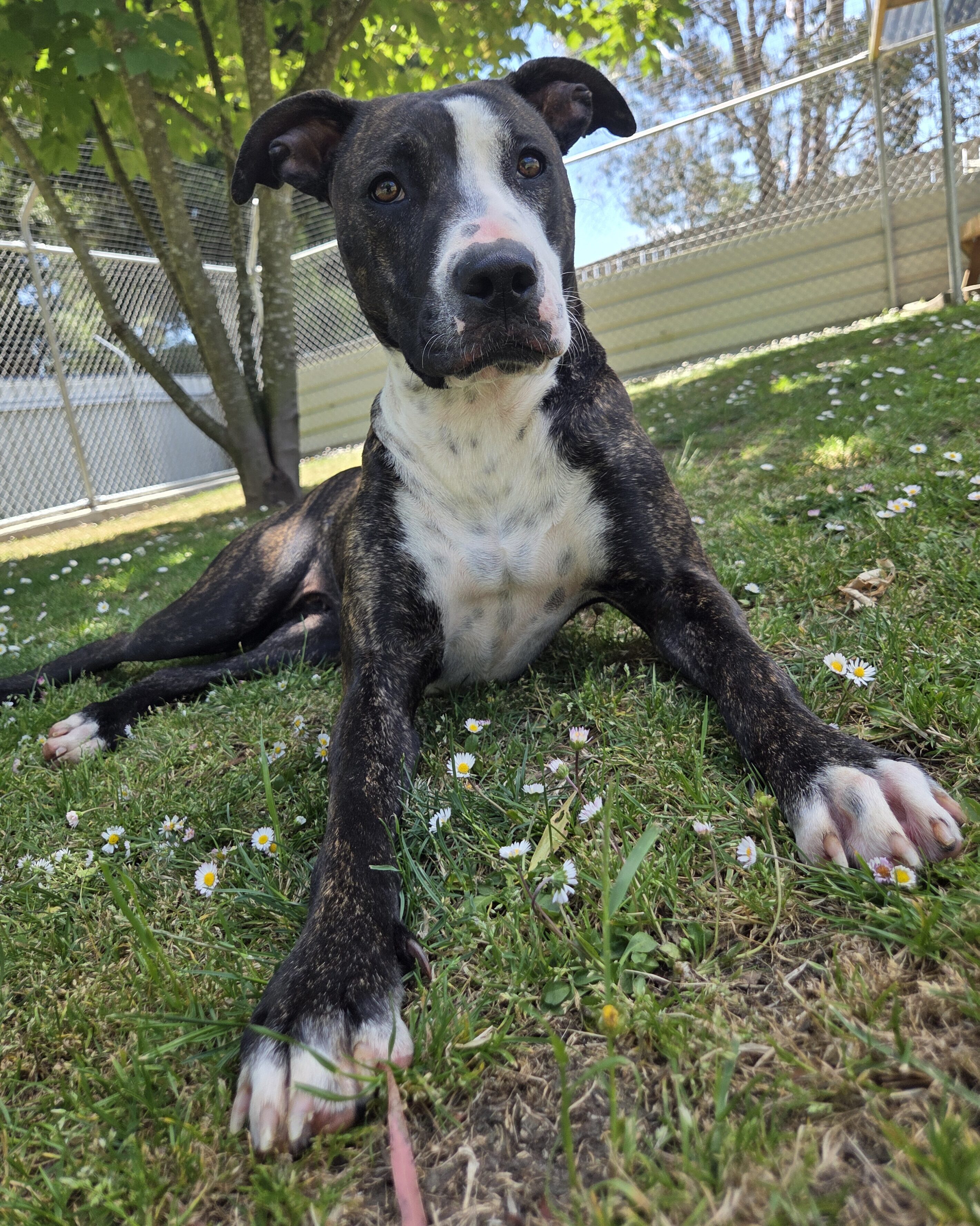 Well, maybe not so regal. “Duchess is a bubbly, affectionate girl who loves a good cuddle,” staff say. “She acts like a six-month-old pup and can be full of beans. She enjoys her treats and enrichment toys.” She also enjoys human company and seeks it from staff at every available opportunity.