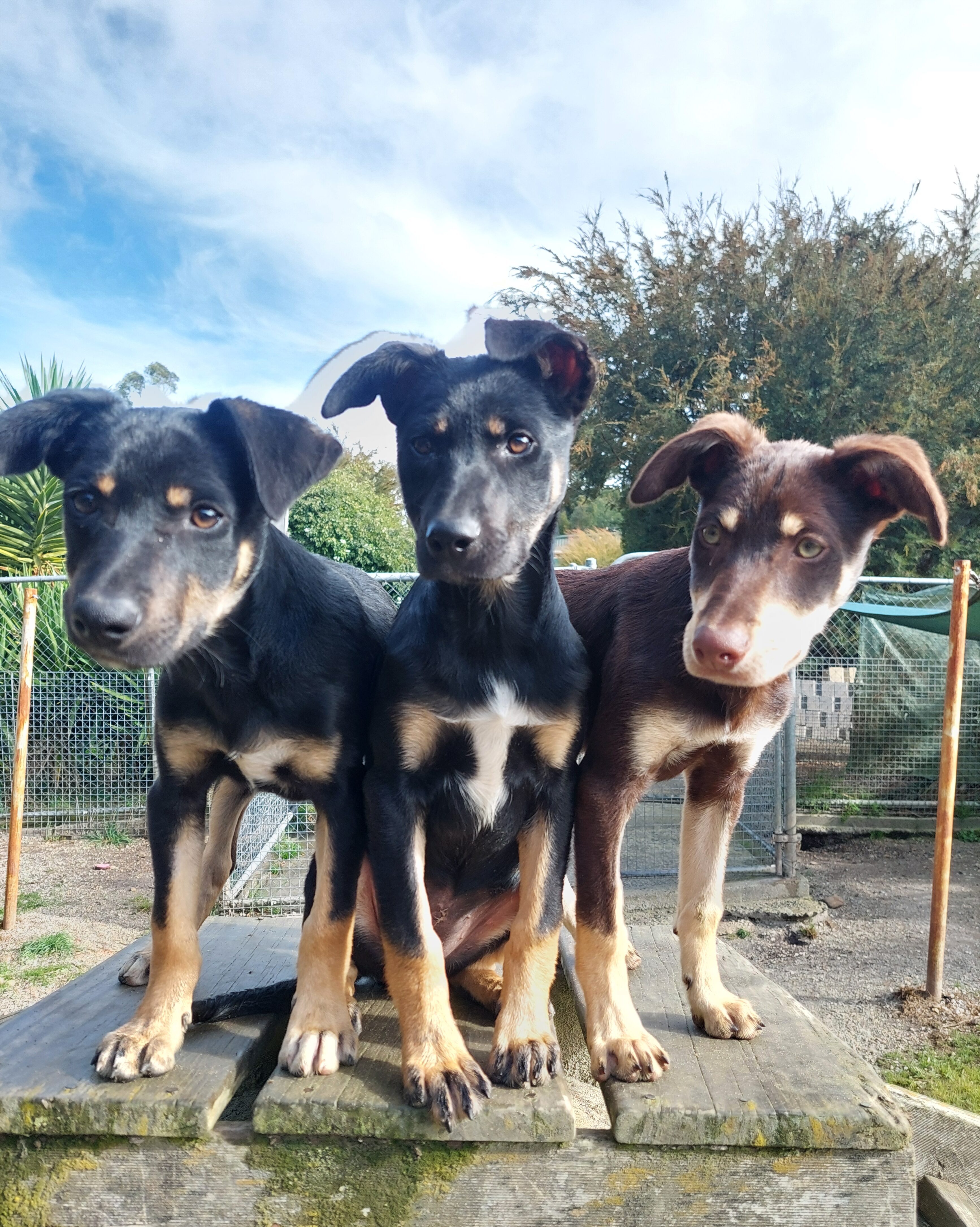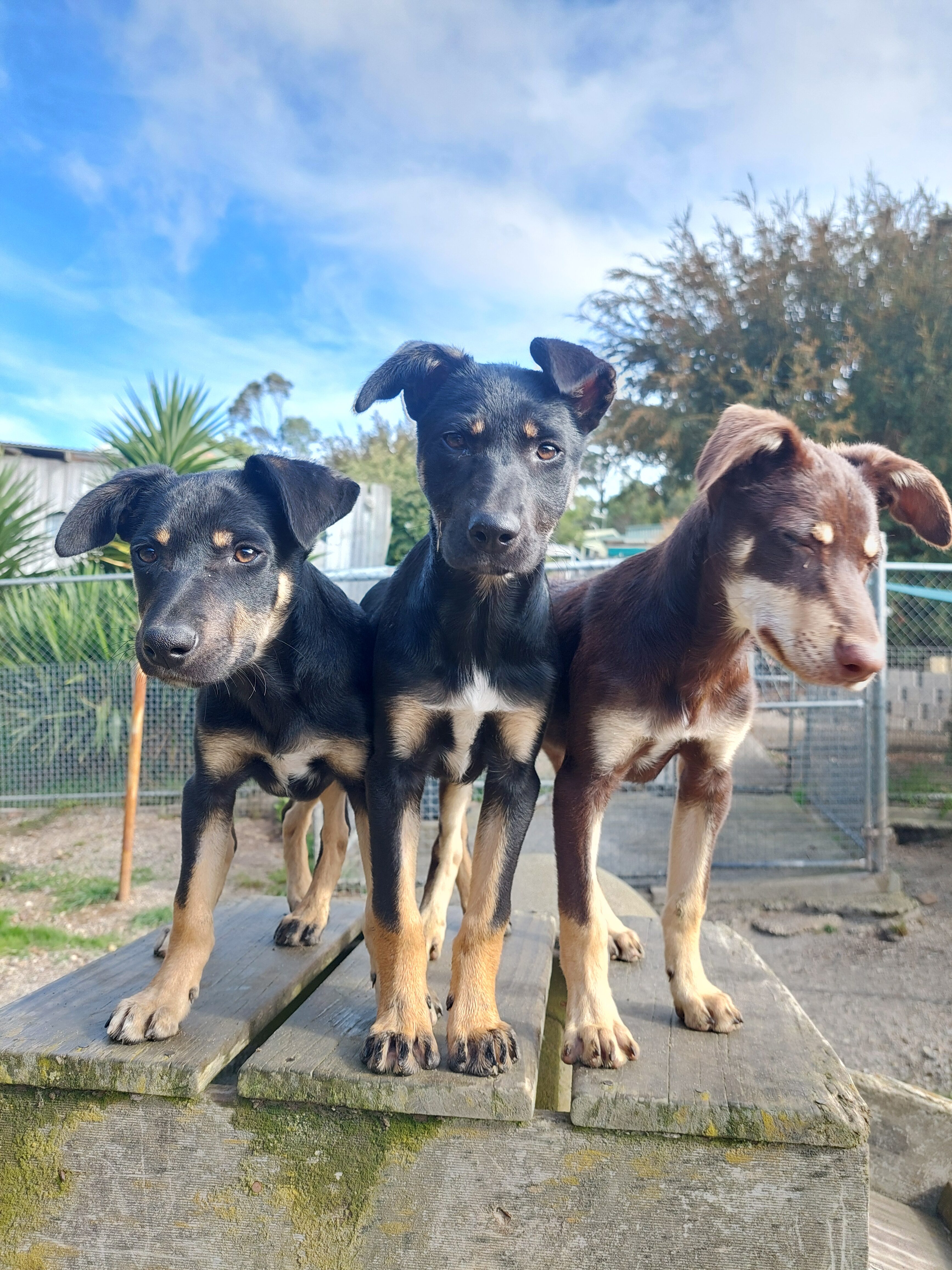 Kath went and got herself adopted before we could post their profile. Black and tan Kim is of course a girl, while the boys are Brett on the left in our main photo, who is also black and tan, and Kel, who is the red guy.