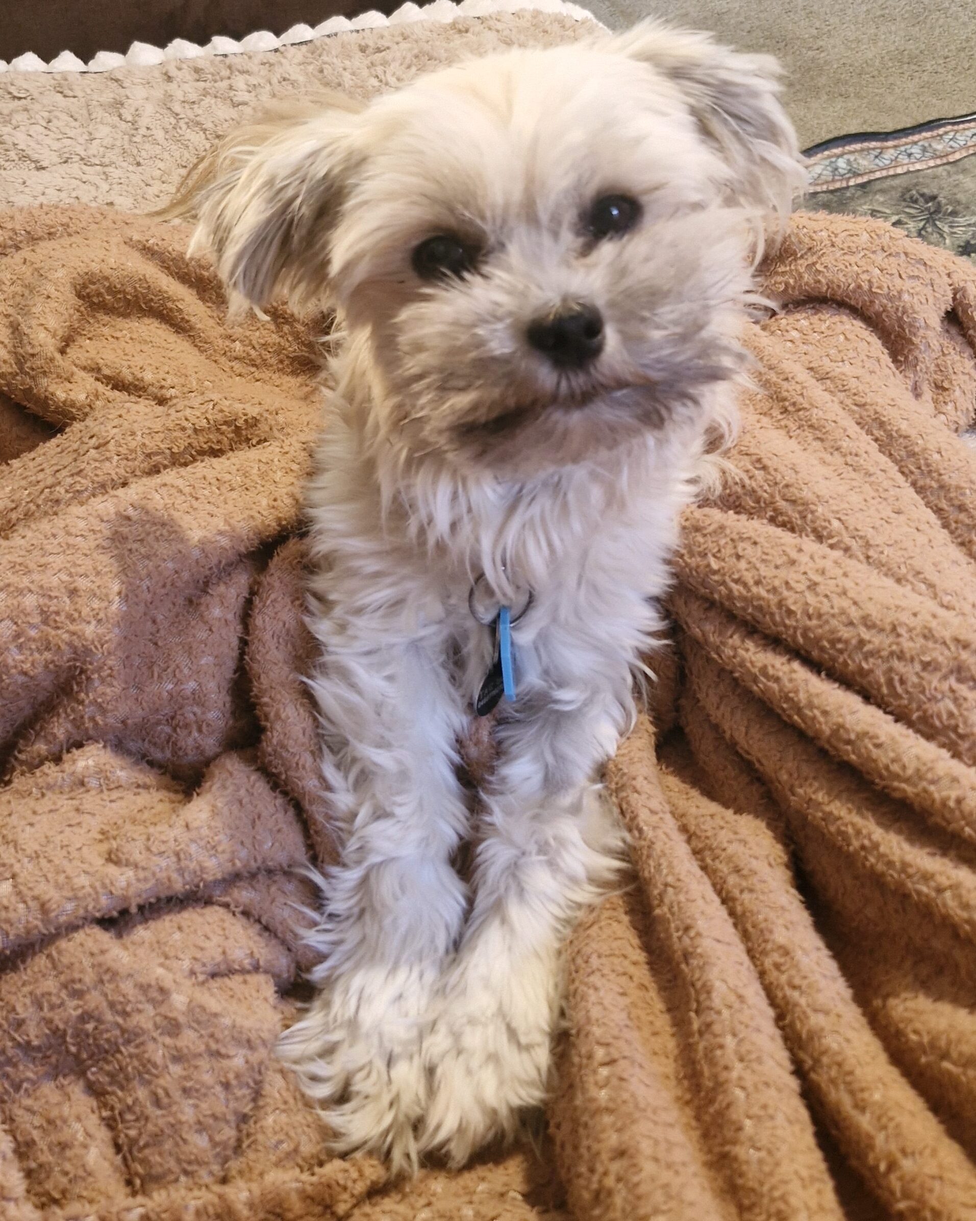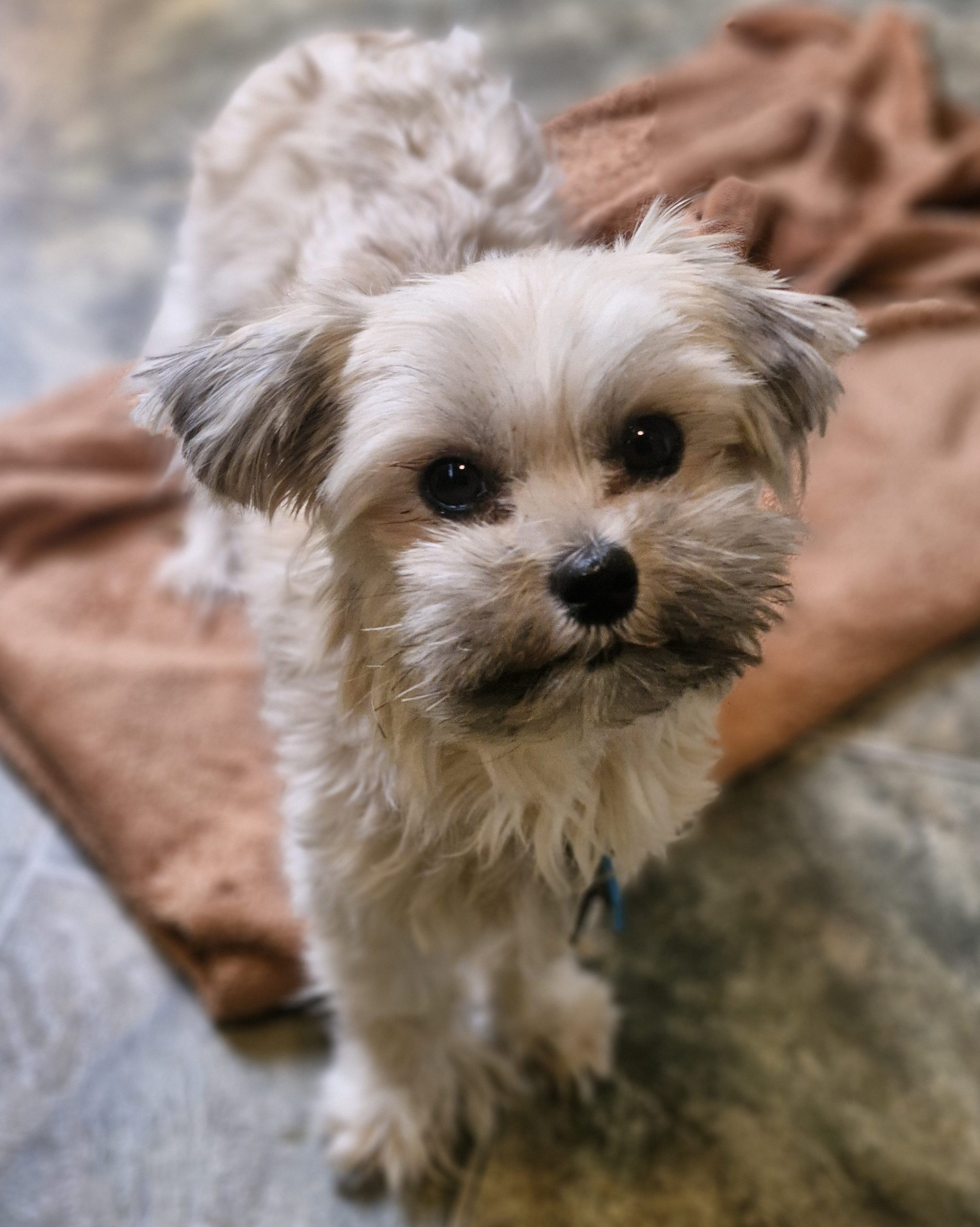 “This quiet girl is still learning and building her confidence in the outside world and with people, so a calm and quiet household would be best for her,” staff say. She’s been working on her toilet training, learning to use the doggie door and to “sit”. She’s been respectful of other small dogs in foster care, taking her cues from them. She might like a calm doggie friend in her new household.