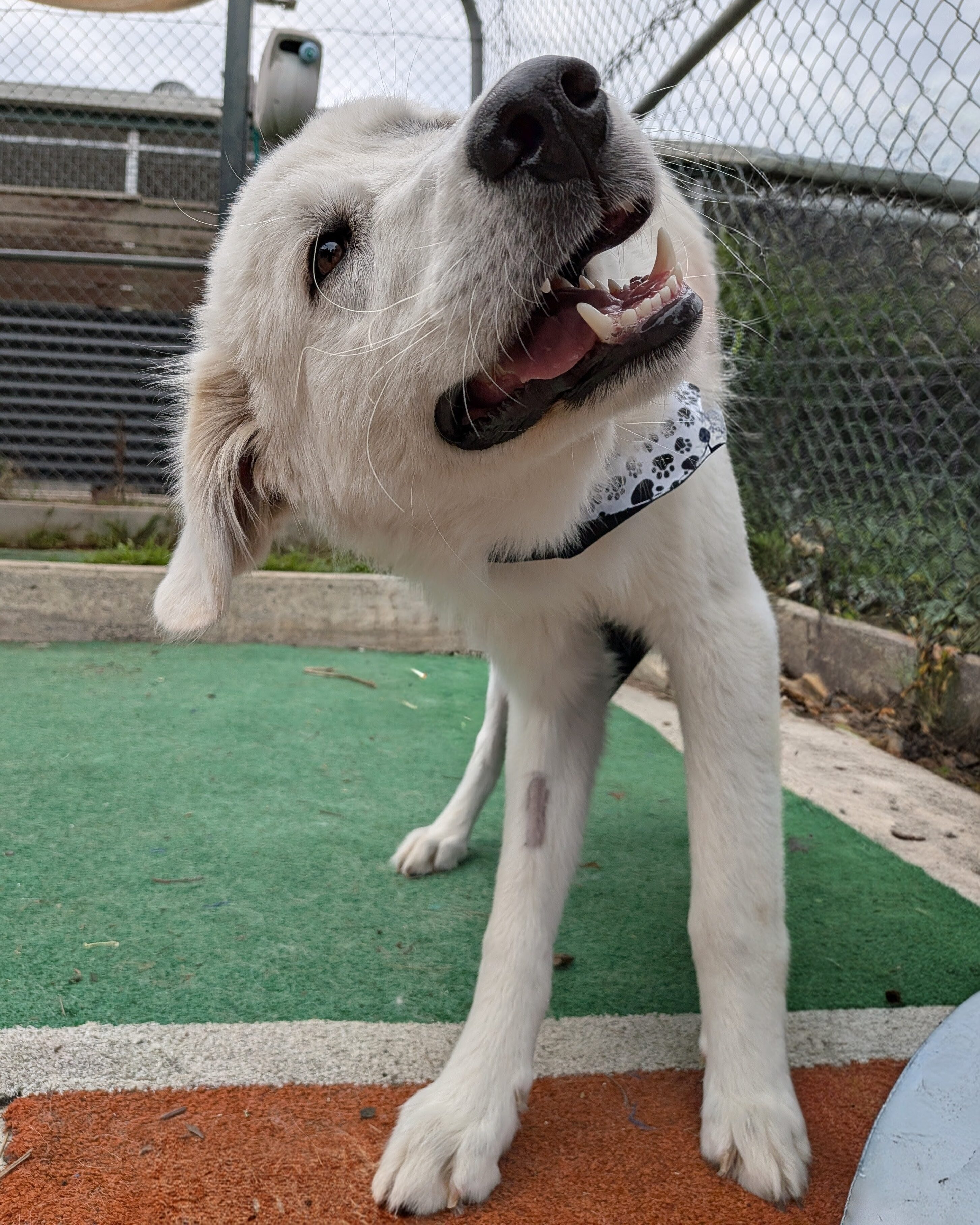 “Maremmas are a working breed and need lots of mental enrichment,” staff continue. “We are looking for someone who is familiar with the breed or has training experience. He has met other dogs while with us and might like a doggy friend in his new home.” Thoughtful matchmaking will be the go here.