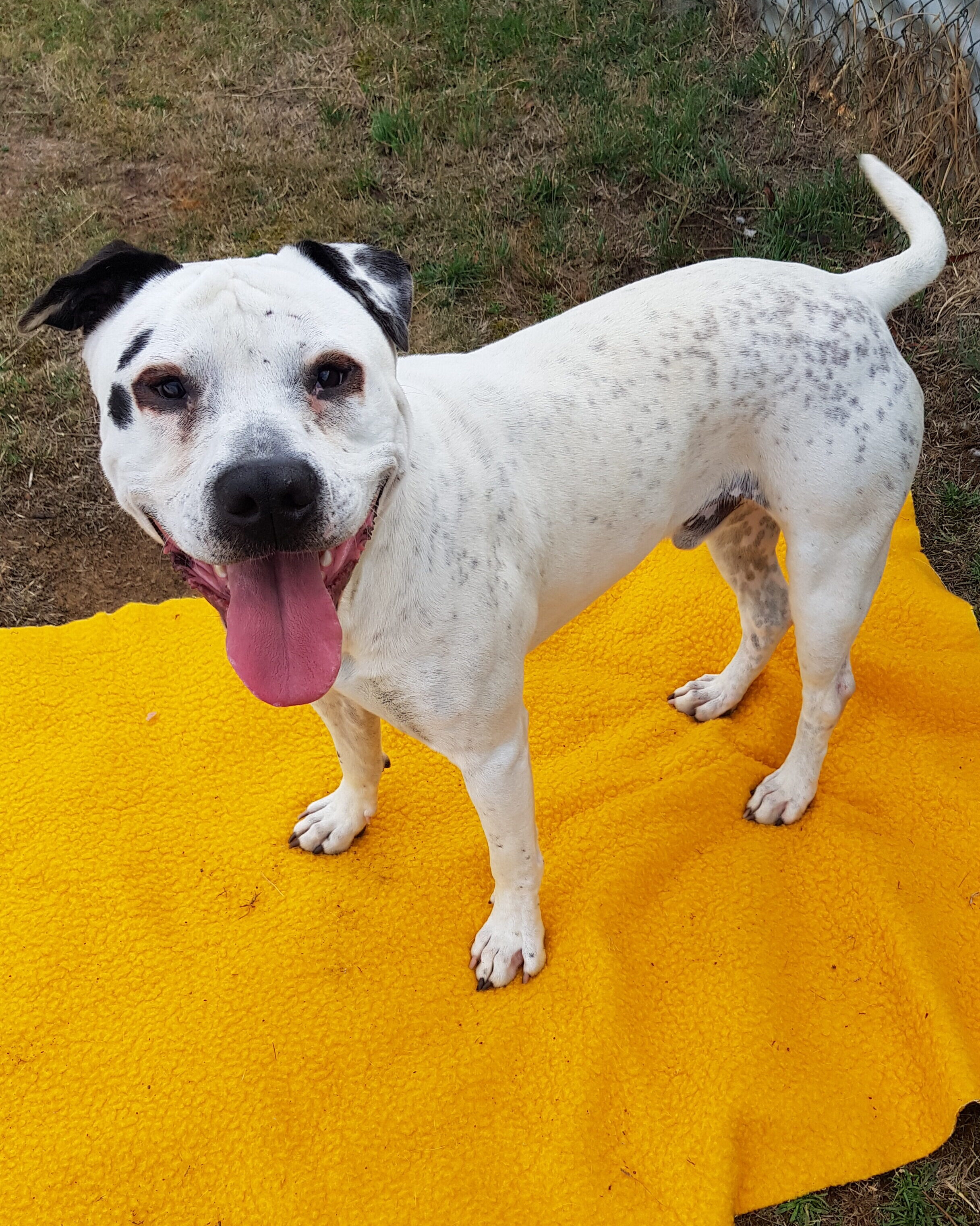 It’s all on with Spotson! What a sunny smile this guy has. This Staffy-Bulldog x was in foster care where his equally sunny personality came shining through.