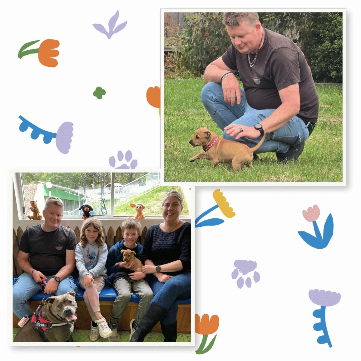 They were looking for a friend for their Staffy, Coco, who’d been getting lonely at home. The second they saw Blossie, they knew she was theirs. As they put it: “We weren’t going to keep looking when we saw her.”