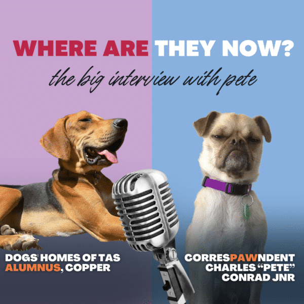 ” I’m writing to give you an update on Pete*, who I adopted from the Hobart Dogs’ Home. A quick bit of background: I tried and failed to adopt him through the EOI process, when he was called Clarence, and again, when he was called Matie. My failure the second time resulted in an evening of ugly crying for hours — so I cried over this dear little fellow before I even met him. Fortunately I was contacted by the Home when Matie was returned after only four days into his second adoption.”
