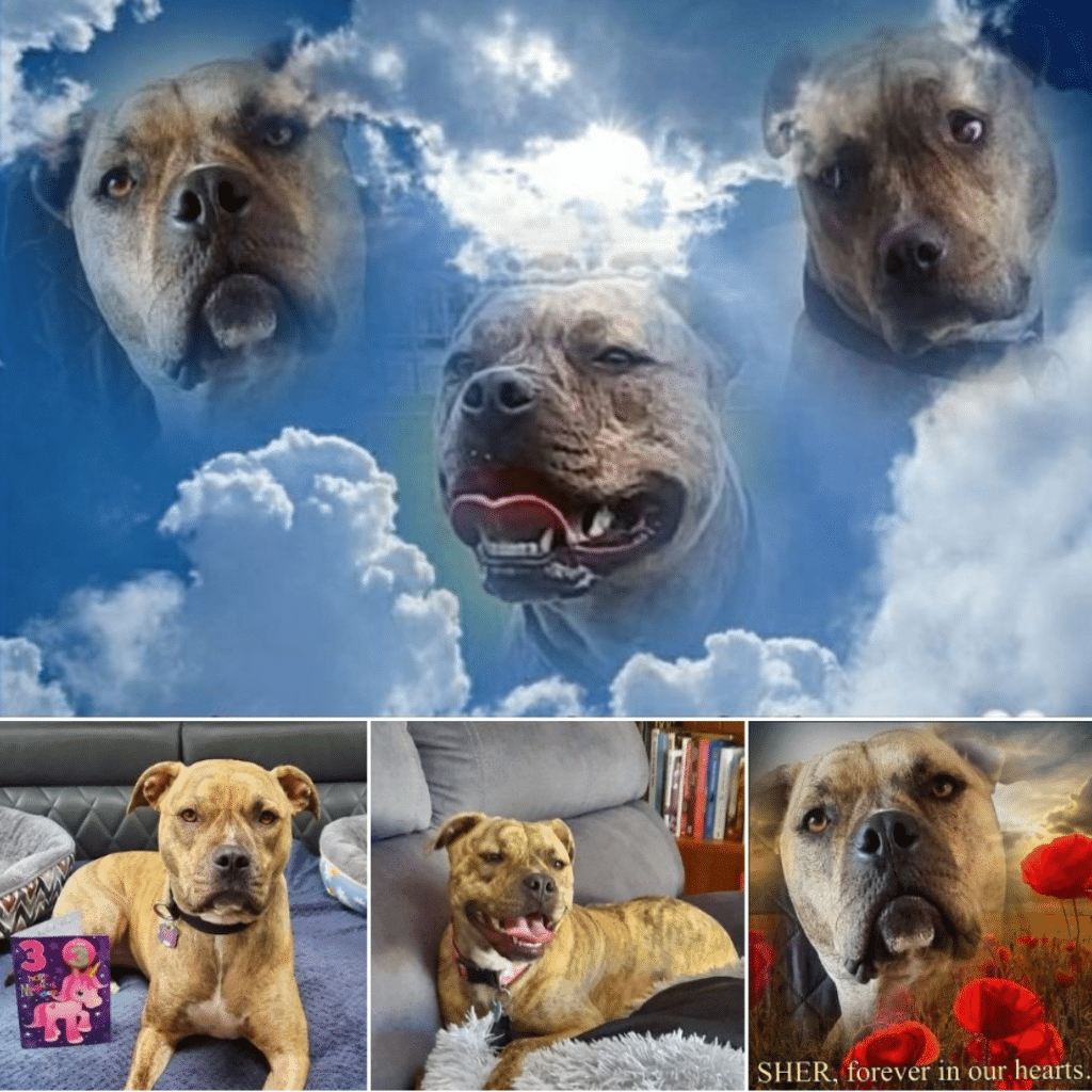 “Precious Sher,” she writes. “We fostered you three years ago, fell in love with you and adopted you six days later. We only had two years and nine months with you before we had to say goodbye. We loved every moment we had together, and crammed so much fun into your life with us. We miss you so much, beautiful girl, but know you are in a beautiful place over the Rainbow Bridge.